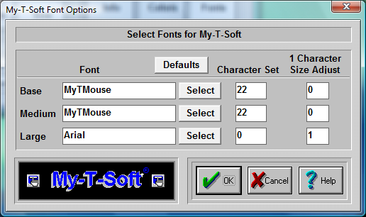 Sizes 1-6 are the Base sizes. For almost all uses, the MyTMouse font is the best choice.